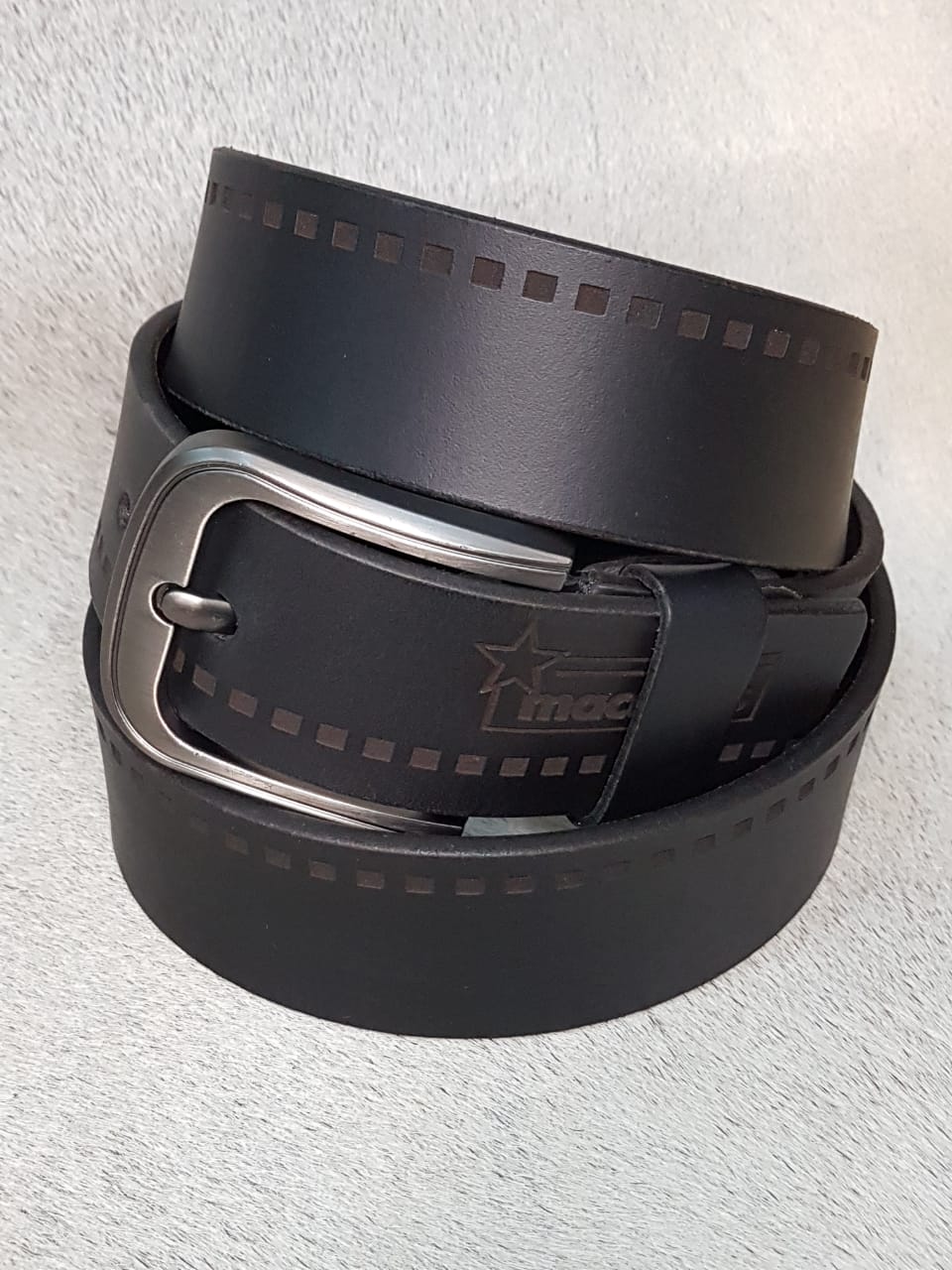 Correa grabada láser. Ancho 4 cmts.